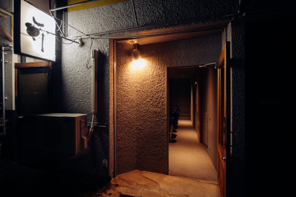 置賜町の路地裏、隠れた名店ひしめく通りにひっそりと佇むショットバー。個性強いバーや小料理屋が立ち並ぶ通り、ローカルの大御所も行き来するこのエリアにいかにして今回の店舗を馴染ませるか・・・