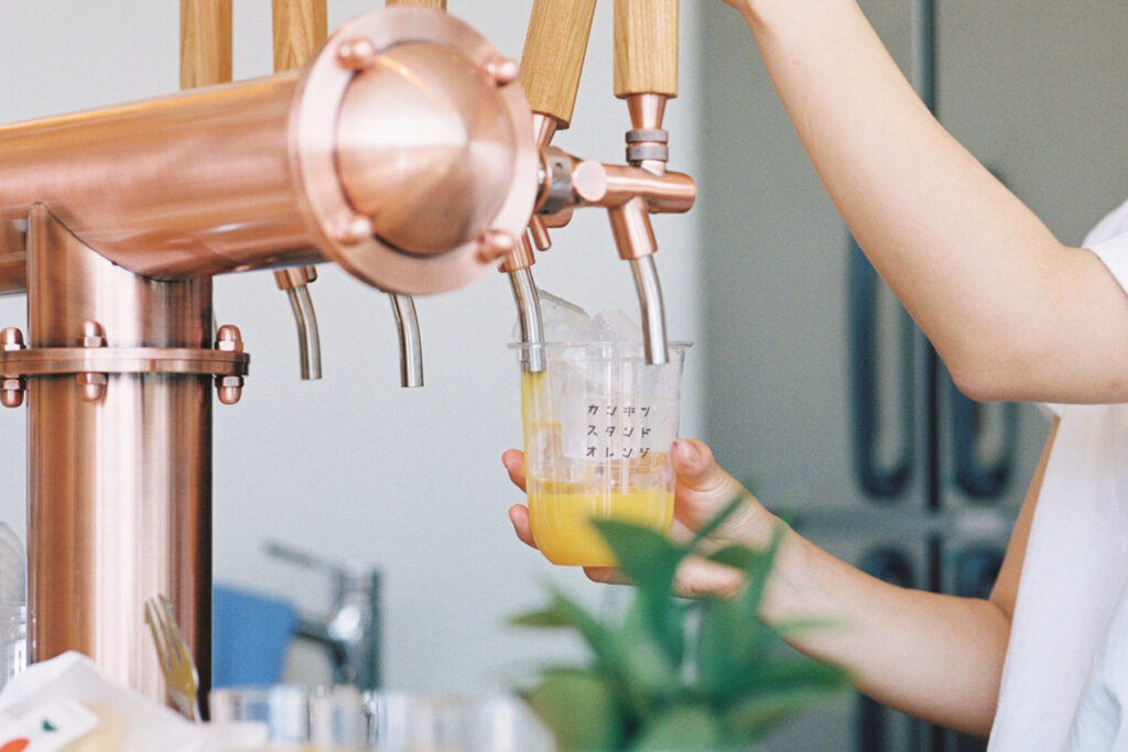 週末の夕方〜夜の時間帯は、柑橘を使用したアルコールや軽食を提供する