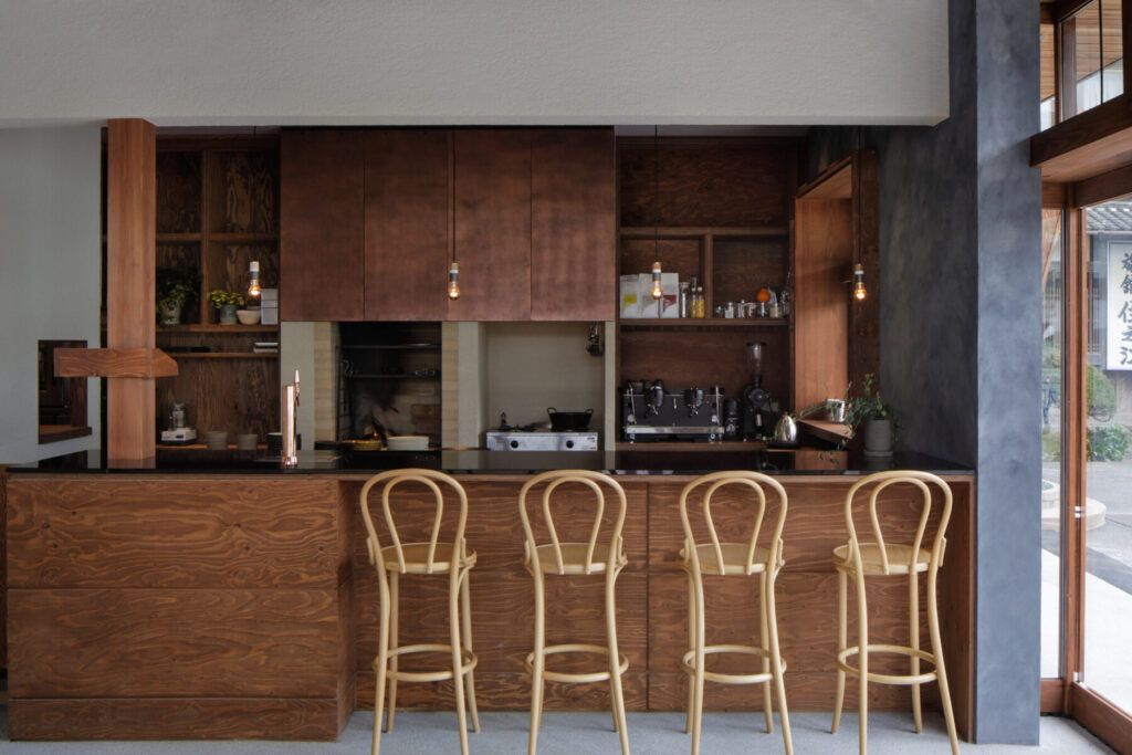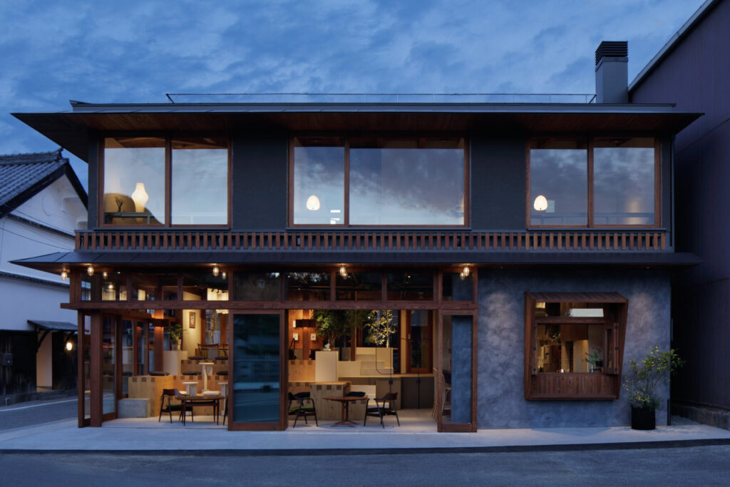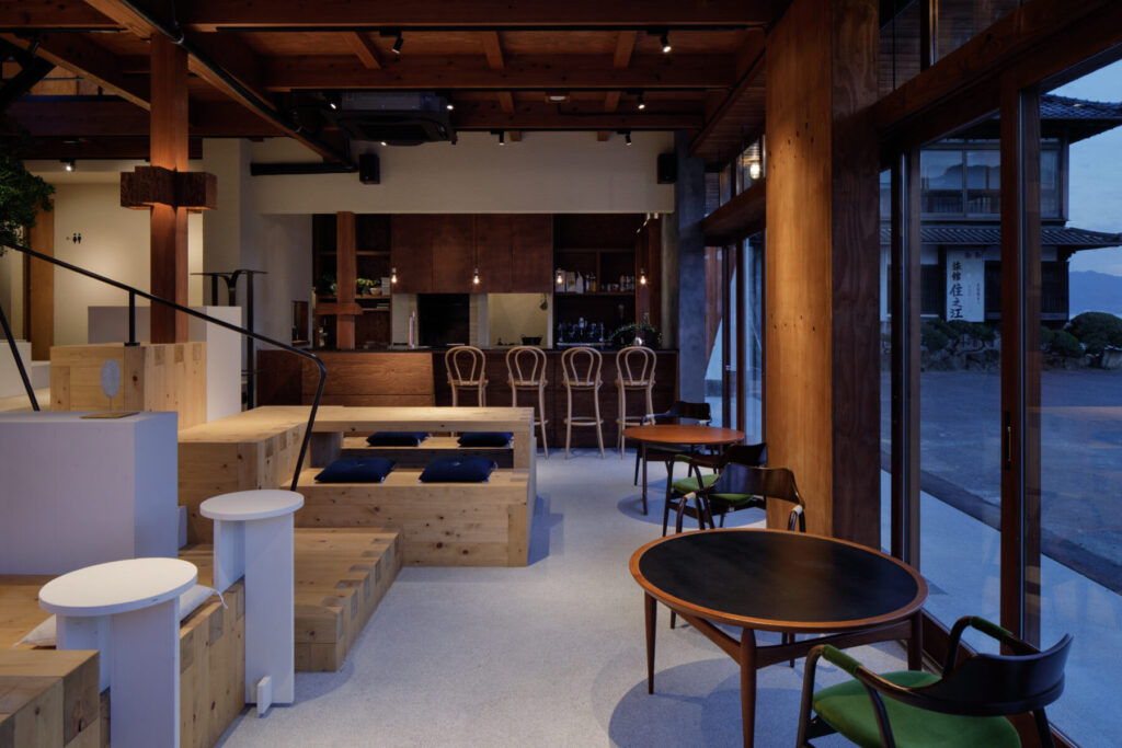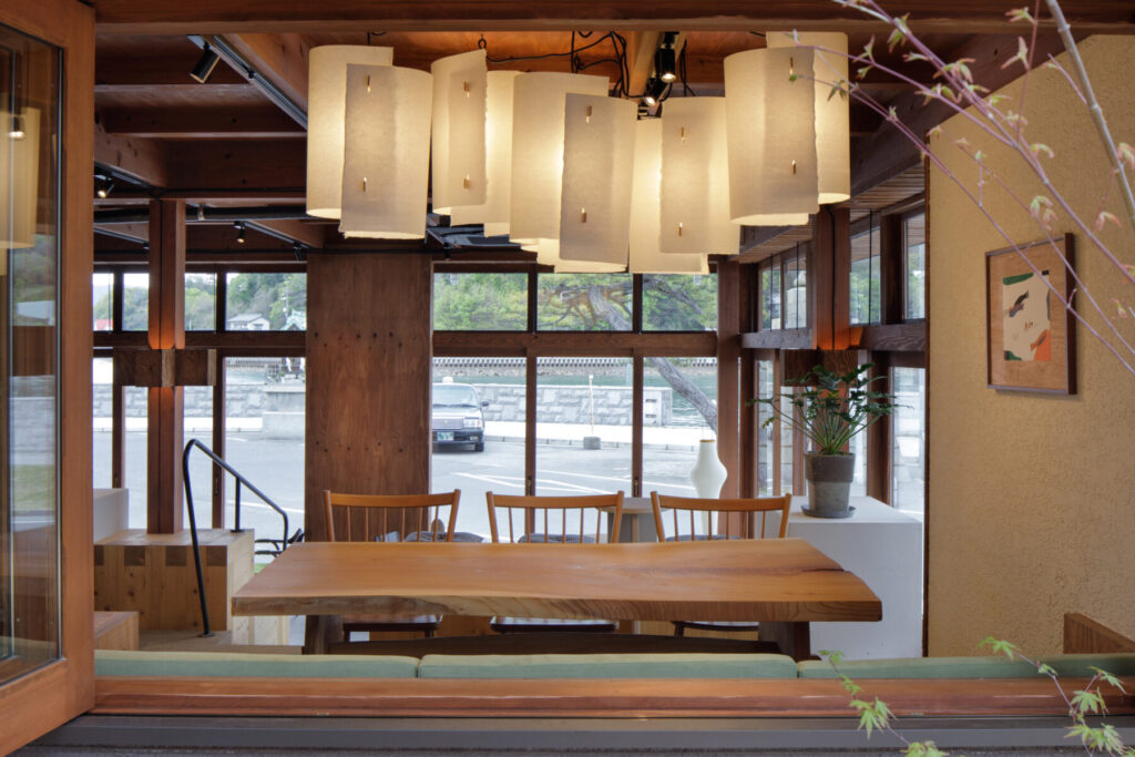 1Fには街の食堂の役割を担い牧火料理を提供するレストラン「Minatoya」2Fには宿泊施設として瀬戸田水道を眺めながら穏やかに時を過ごすGuestRoomを備える。